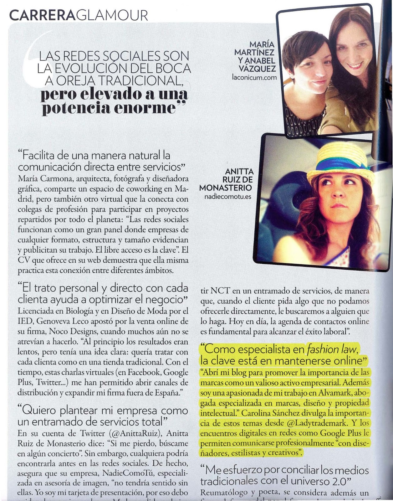 Hola a tod@s!! Aquí os dejo la mini entrevista que me hizo la revista Glamour!