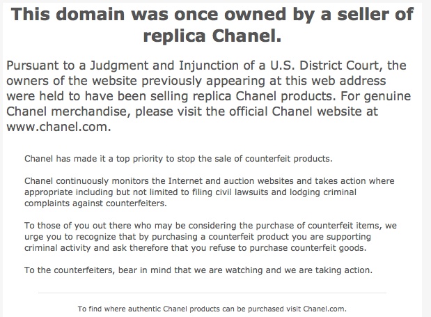 «Este dominio fue una vez propiedad de un vendedor de falsificaciones Chanel.